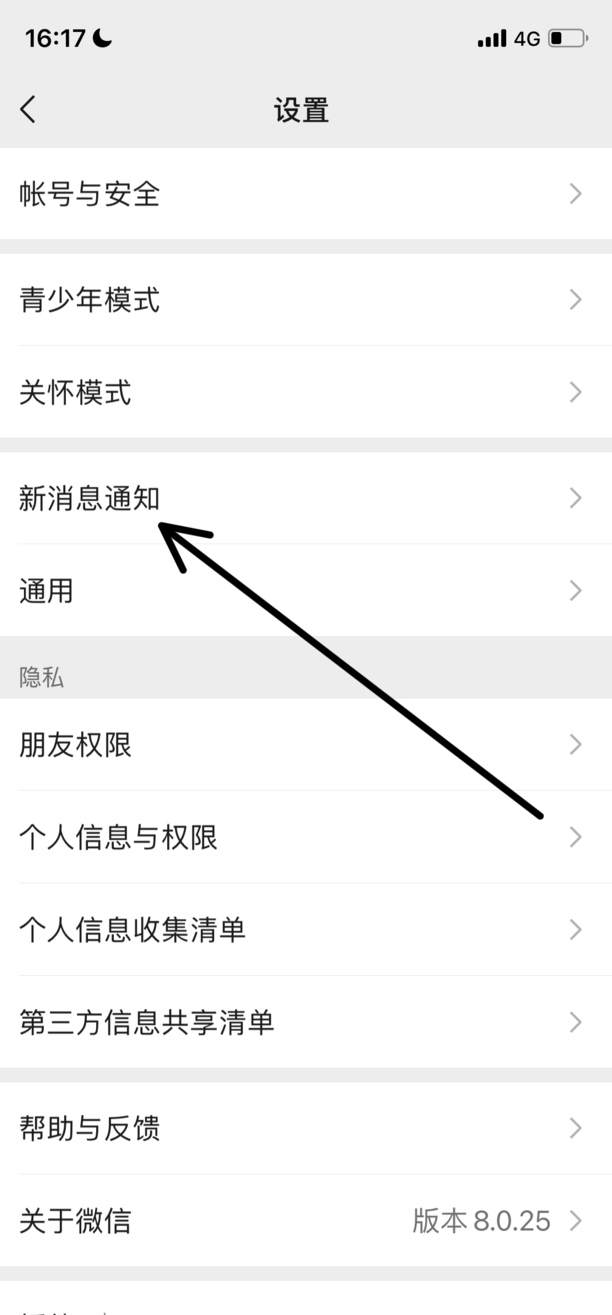2、点击新消息通知。
