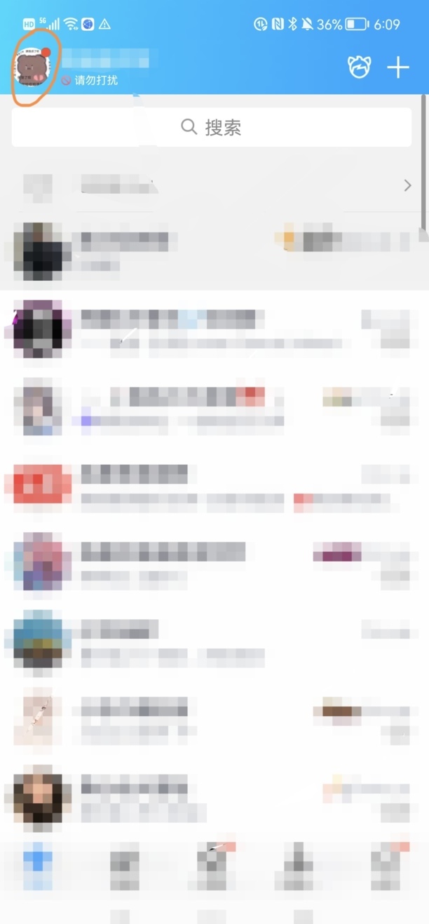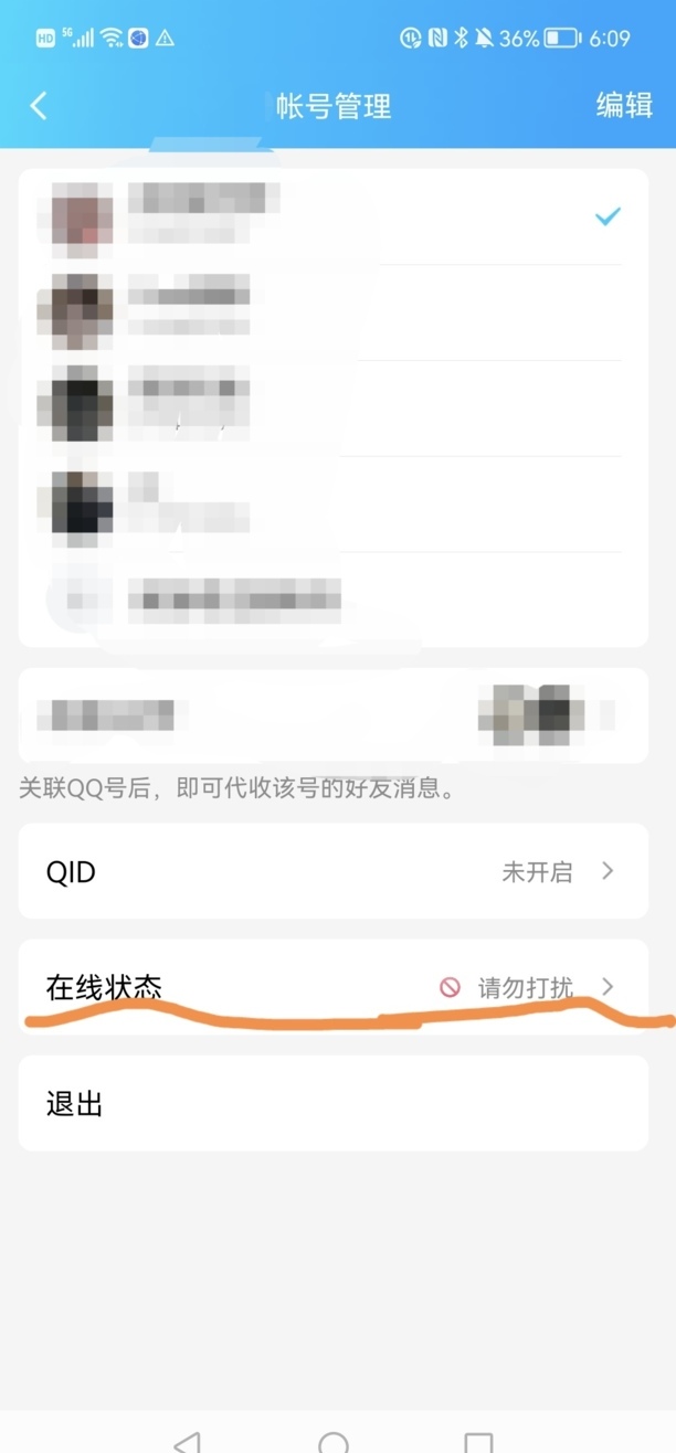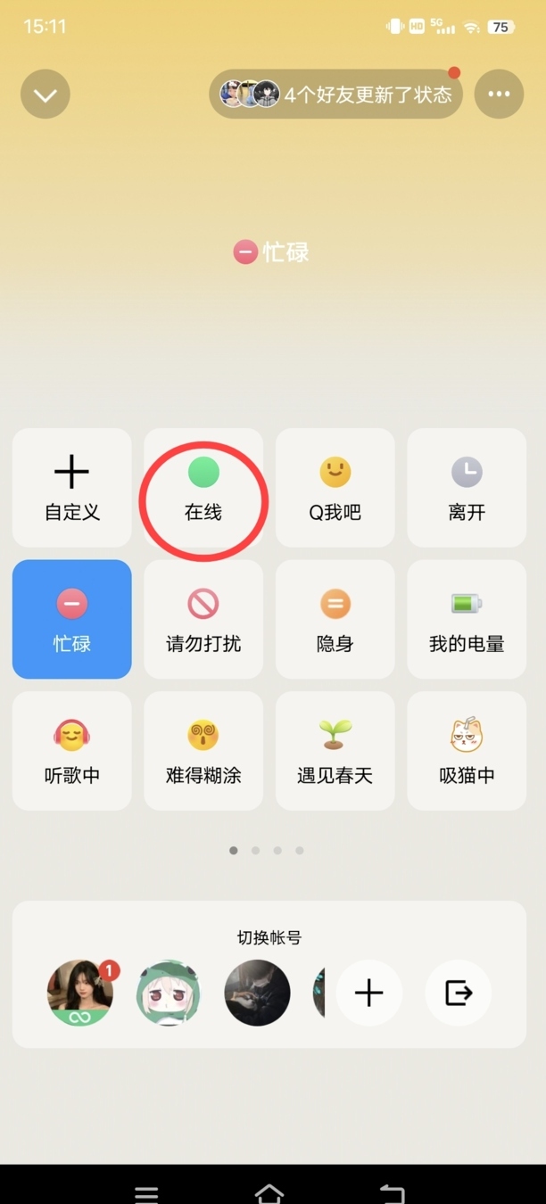 第二:在qq界面长按右上角个人头像呼出切换状态界面。