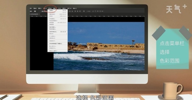 首先用ps打开要抠的图片,然后鼠标点击菜单栏:选择-色彩范围