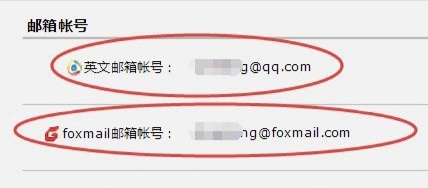 5、进入邮箱管理页面后,既可以看到该数字邮箱下关联的英文邮箱账号和Foxmail邮箱账号。