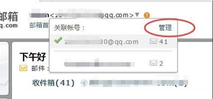 4、然后点击邮箱右侧的下拉框,在选项中点击“管理”。