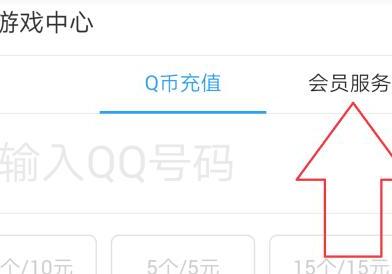 4、点击Q币充值,进入到游戏中心页面,这里有个会员服务功能,如图。
