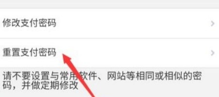 在“支付密码”页面中,点击“重置支付密码”。