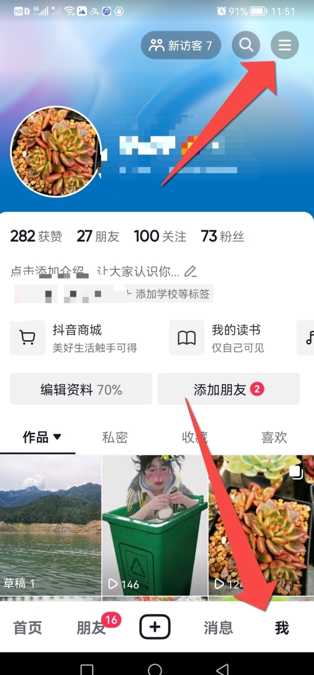 1、以华为手机p30为例,打开抖音APP,点击右下方的我,并点击右上方的三条杠。
