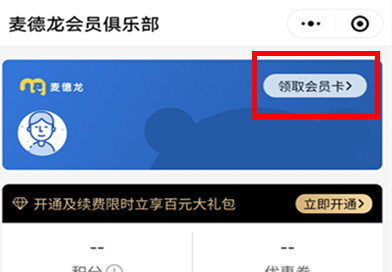 点击右上方“领取会员卡”,按照系统提示授权手机号并填写会员信息。