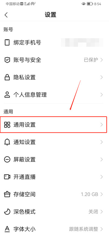 3、进入设置页面点击【通用设置】;