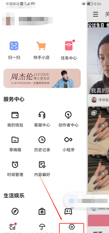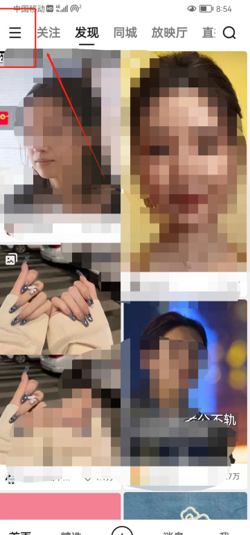 1、打开快手,点击左上角的三条横线;