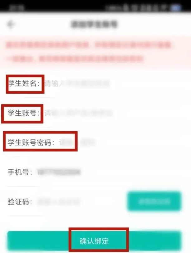 4.输入学生个人信息,点击【确认绑定】