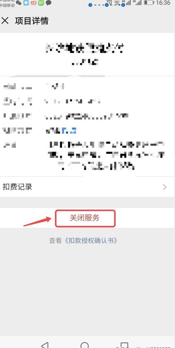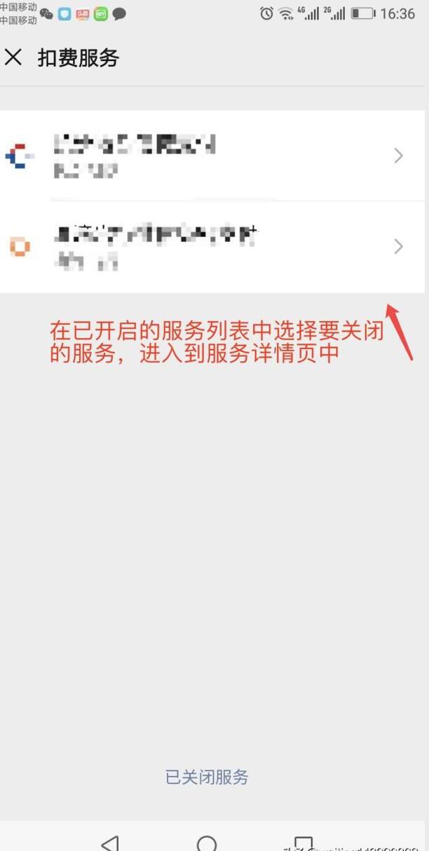 第五:这样就进入到“扣费服务”界面中了,点击想关闭的扣费服务。