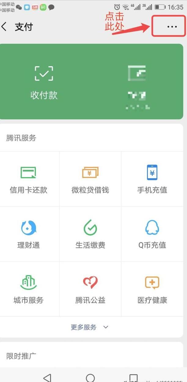 第三:进入到“支付”界面,点击界面右上角的三个点。