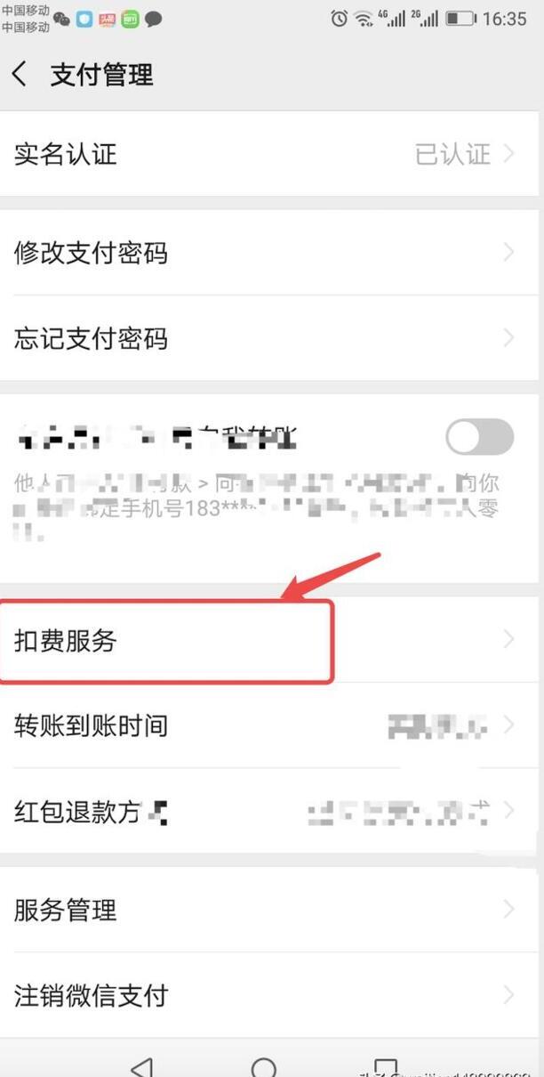 第四:进入到“支付管理”界面,点击“扣费服务”。