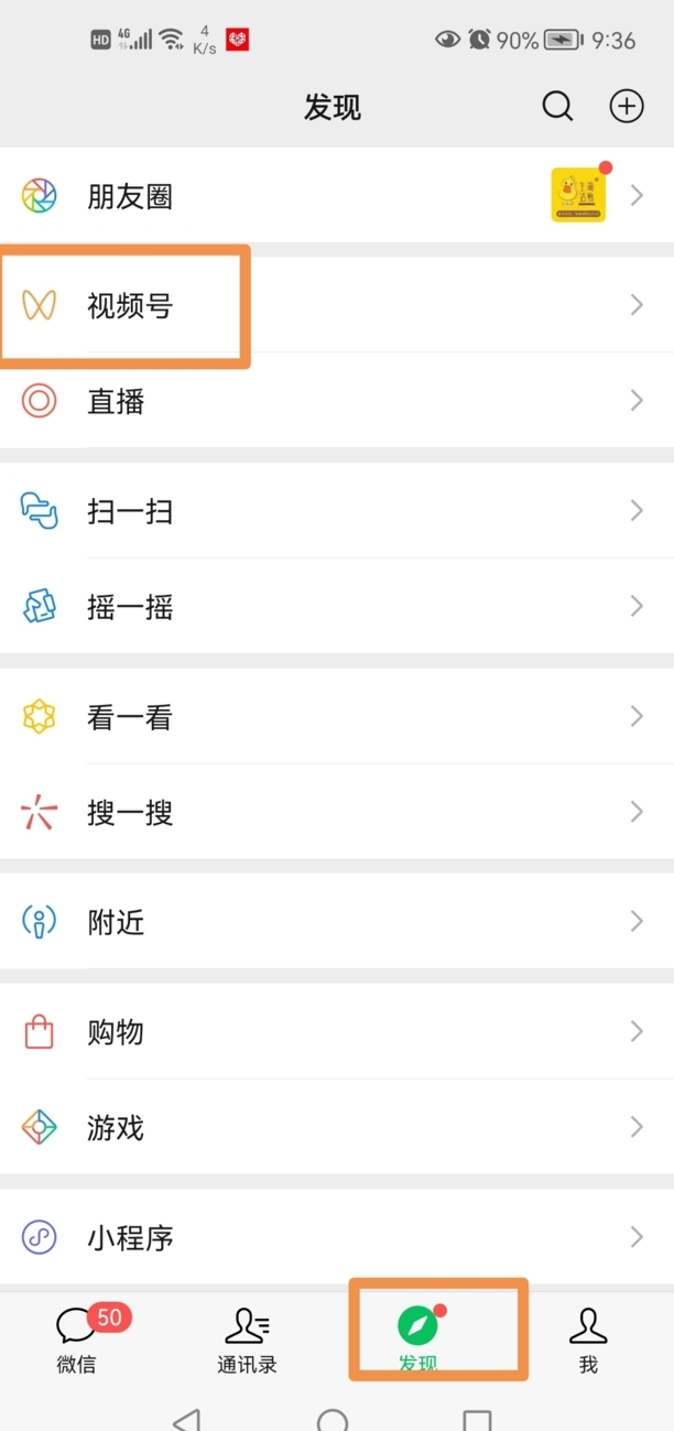 步骤1、首先打开微信点击底部的发现,然后点击视频号