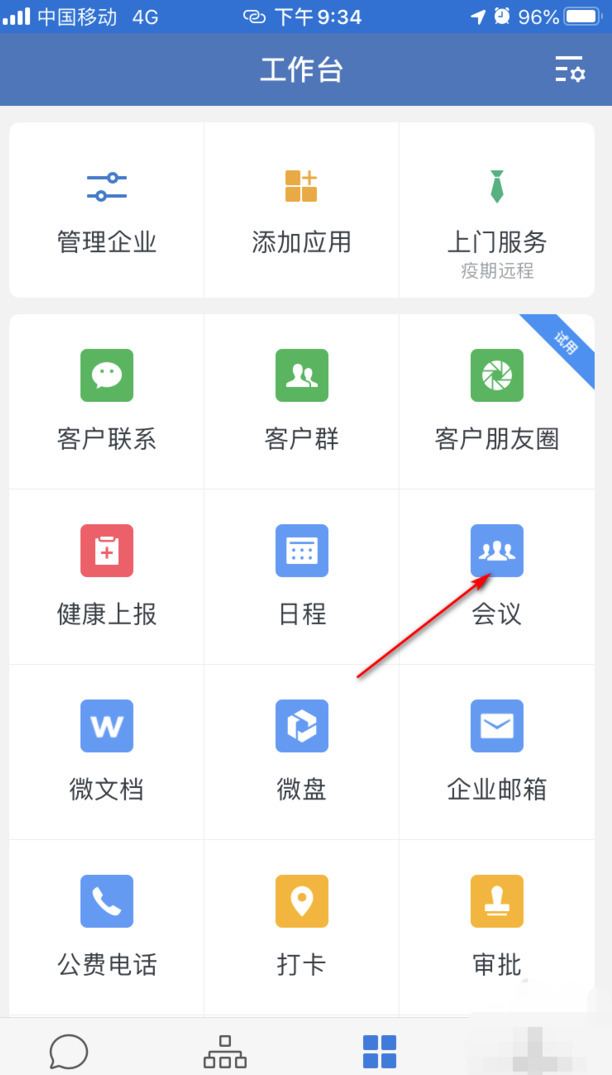 步骤3、然后找到【会议】图标,点击进入。