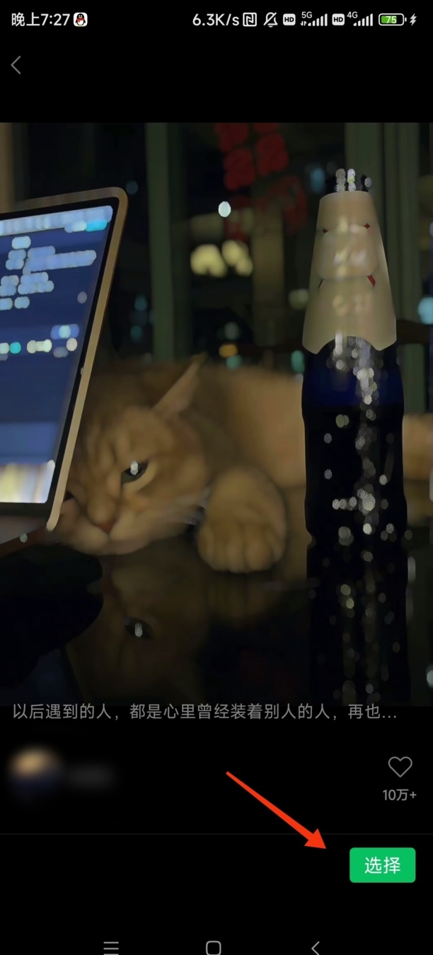 3、选择一个想要设置的微信背景图进入后,再点击右下角的选择按钮即可。