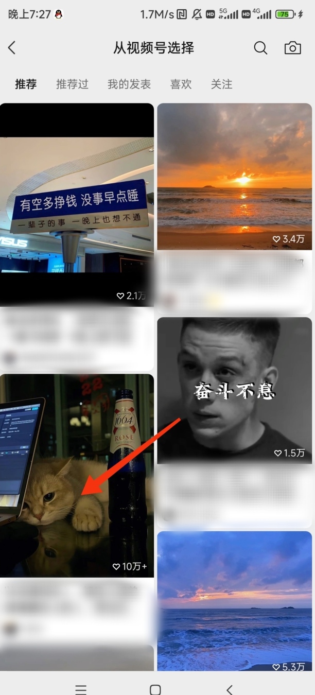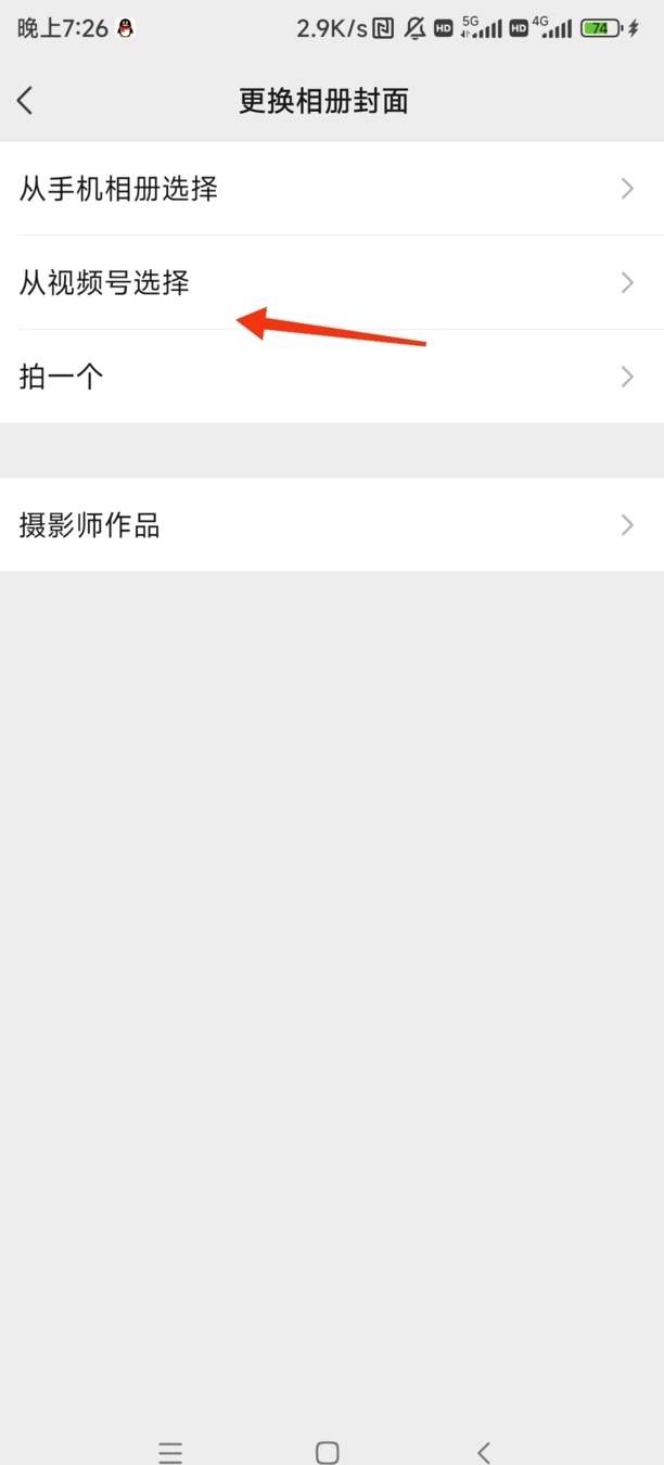 2、接下来弹出新页面当中,点击右下角的换封面选项,进入点击从视频号选择。