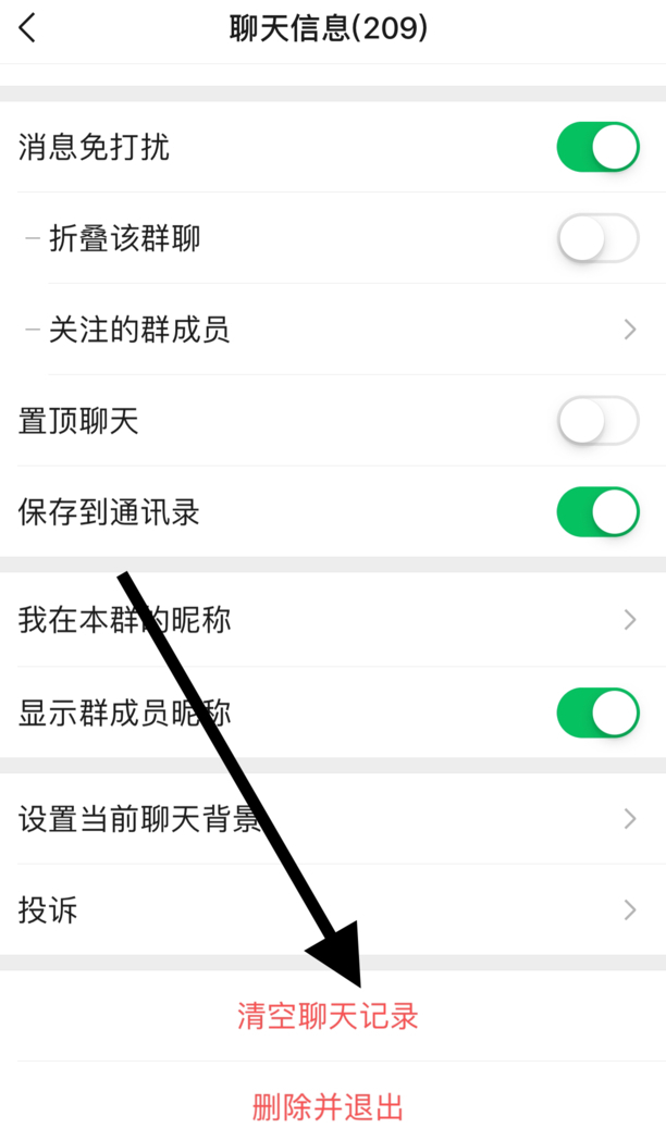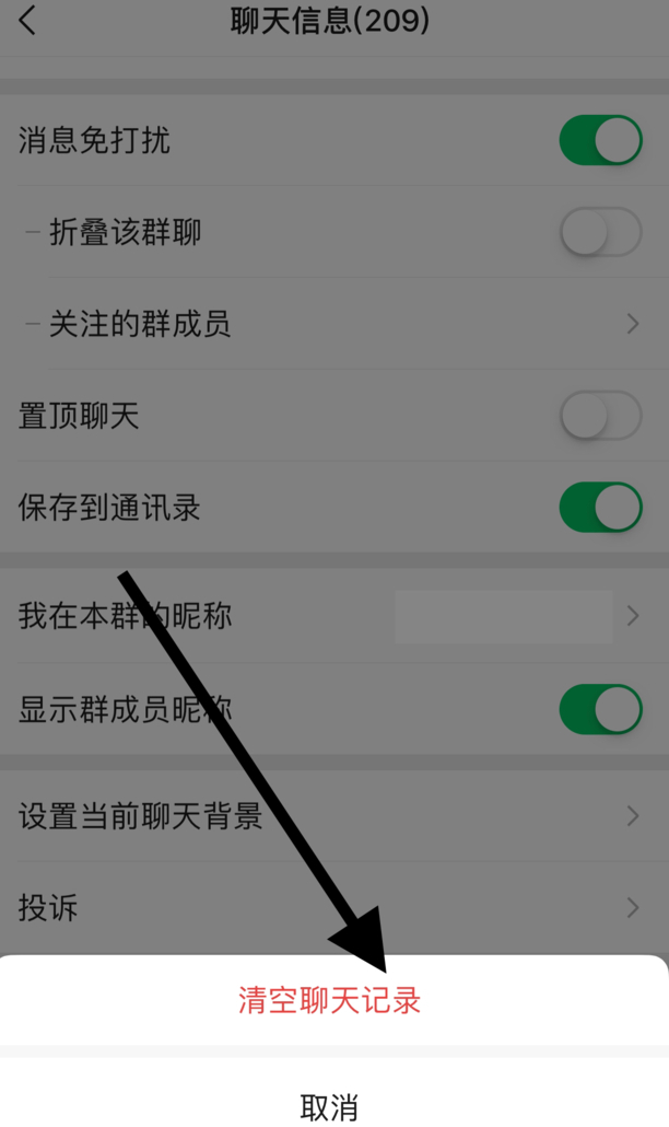 4出现菜单后,点击 清空聊天记录,就可以了。