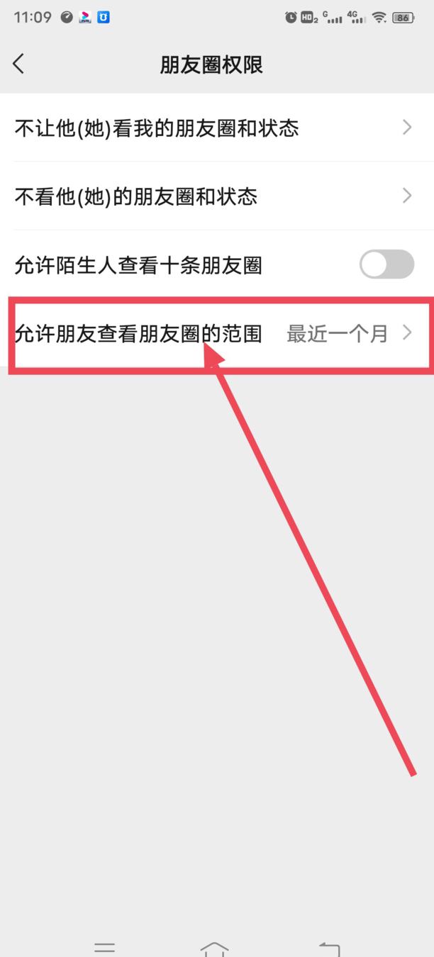 第五:通过【允许陌生人查看朋友圈的范围】可设置三天访问、半年访问、全部访问权限,实现只浏览自己三天朋友圈内容功能。
