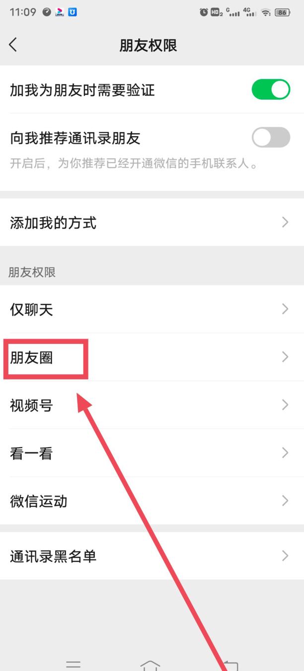 第四:通过设置【不让他/她看我的朋友圈】、【不看他/她的朋友圈】可实现添加黑名单功能,屏蔽对方。