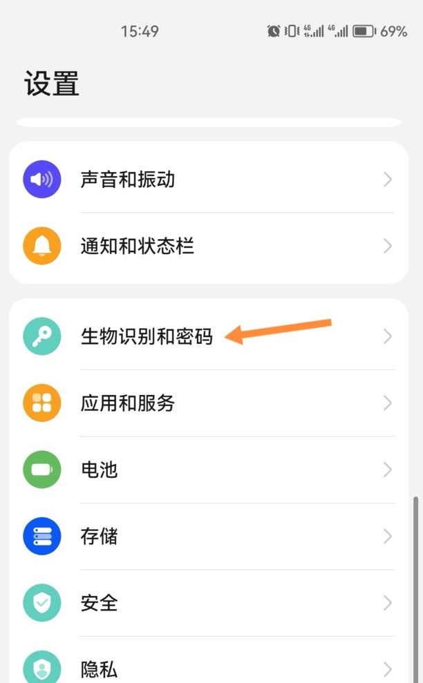 1、华为p40手机,鸿蒙3.0系统为例,打开手机设置,点击生物识别和密码。