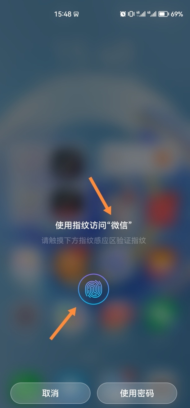 7、设置成功以后,就需要通过指纹解锁才能打开微信。