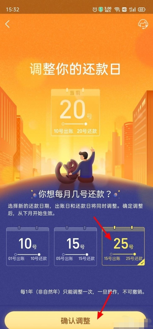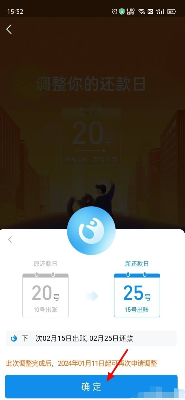 第五:点击立即延期后弹出服务详情对话框,看下最后还款日和手续费,没有问题直接点击下面的【确定】。