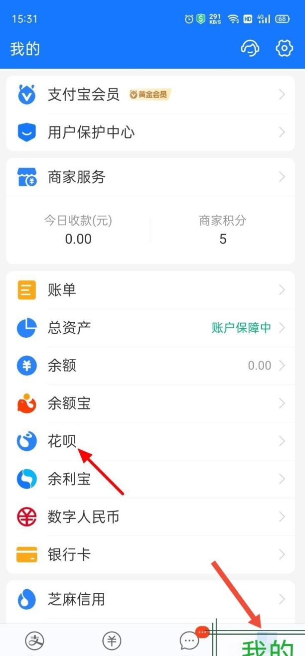 第一:打开手机支付宝并成功登录,然后直接点击支付宝首界面里的【花呗】。