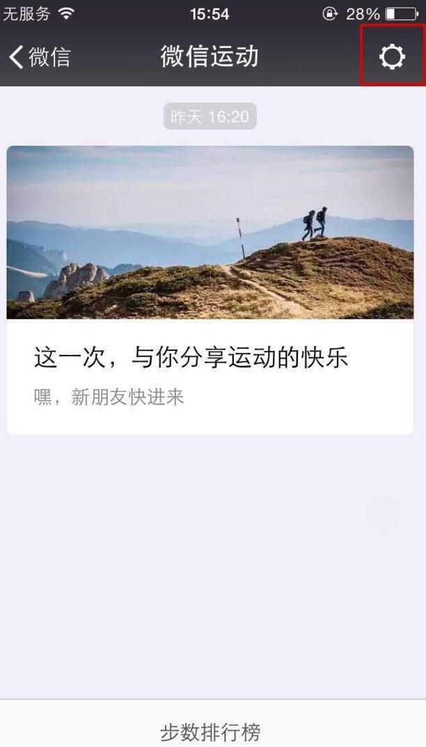 点击微信运动这个图标——进入微信运动页面——点击此页面右上方的小齿轮,如图: