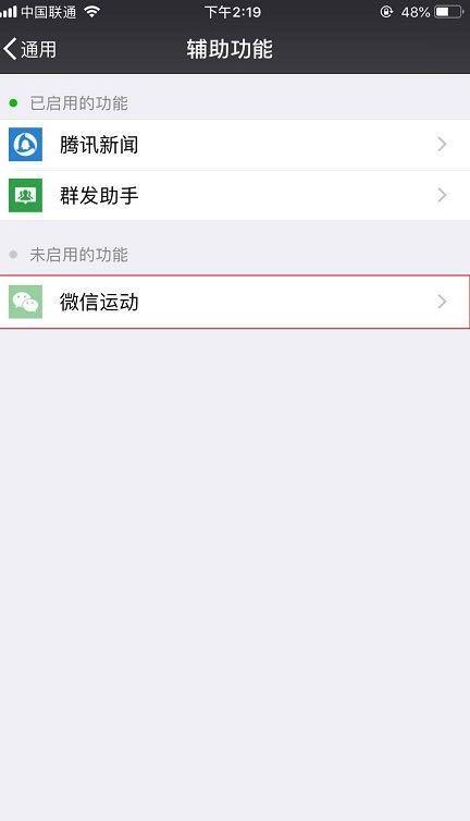 既然找到了<;微信运动>;,下一步要做的就是打开这个功能就可以了,如图所示: