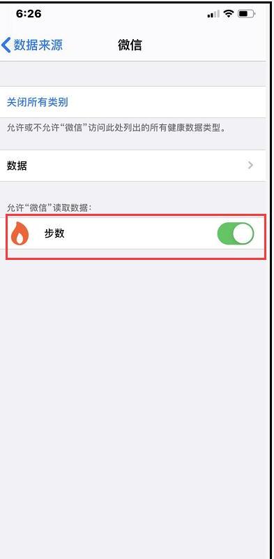 设置到这一步之后,就差一步就完成了,直接在此页面中把步数那栏的小圆点点开,成绿色就行了,这就打开了。