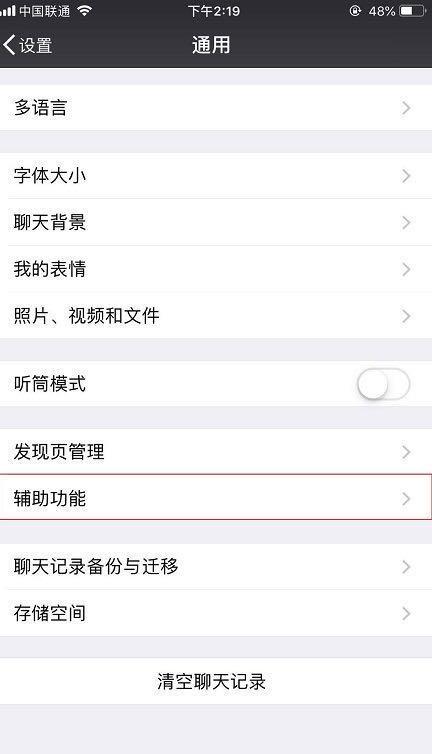 第三:在进入到的通用设置中,找到“辅助功能”选项,然后直接点击进入到微信的辅助功能窗口中。