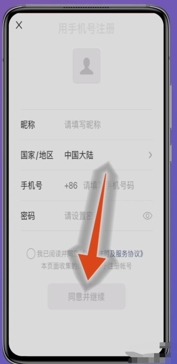 6、在注册界面里,设置第二个微信号的信息,点击“同意并继续”即可。