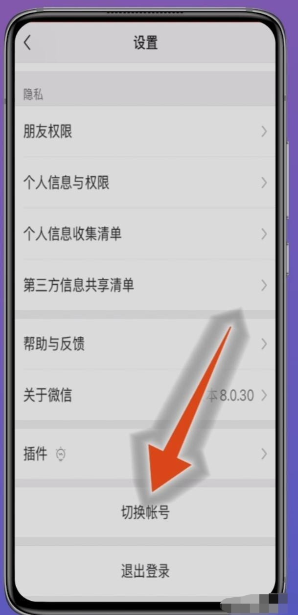 2、在设置界面里,找到“切换帐号”选项,点击它进入。