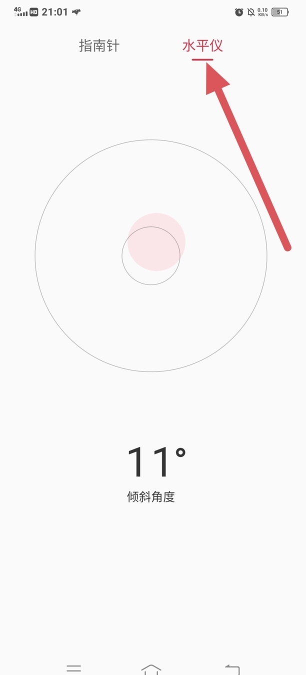 步骤3、点击水平仪,可看到倾斜角度