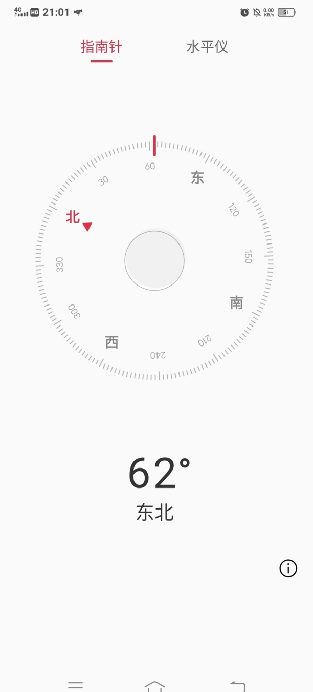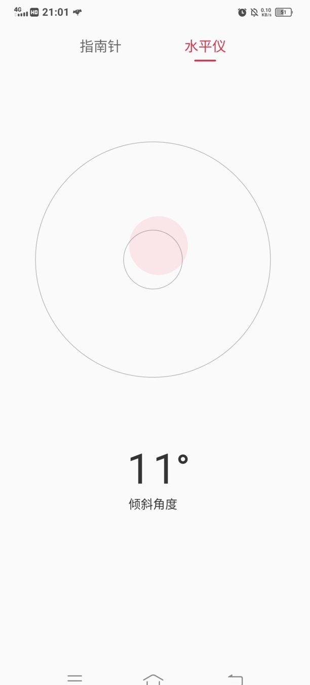 第六:另外指南针还可以显示平面是否水平向右滑动。当为0°的时候就是水平。