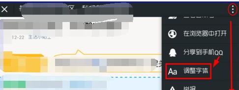 4、还有局部字体的设置方法,比如说朋友圏的文章,只要打开一篇文章,在右上角有一个三个点(如图所示)的功能按钮,点击打开,找到字体调整,也可以局部地调整字体大小。