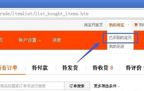 1、登录淘宝后,点击“我的淘宝”-“已买到的宝贝”