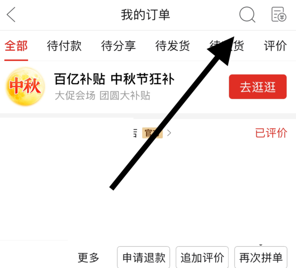 第二:我的订单那一栏点击后面的【查看全部】,即可看到全部的订单。
