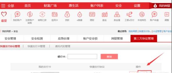 5、进入第三方协议存管界面,可以看到你支付宝使用的快捷卡,点击后面的查询,如下图所示