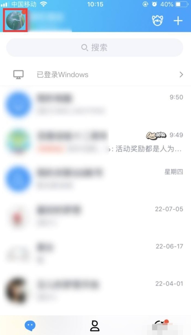 第一:打开手机qq,然后单击左上方的头像。