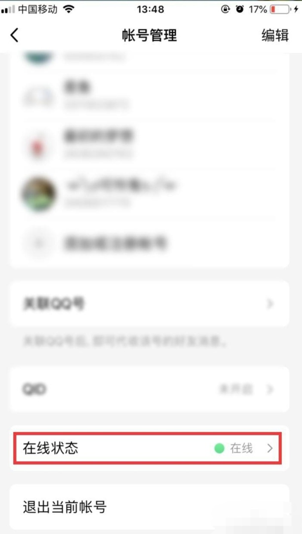 第三:进入设置界面,单击“帐户管理”,然后选择自己的在线状态。