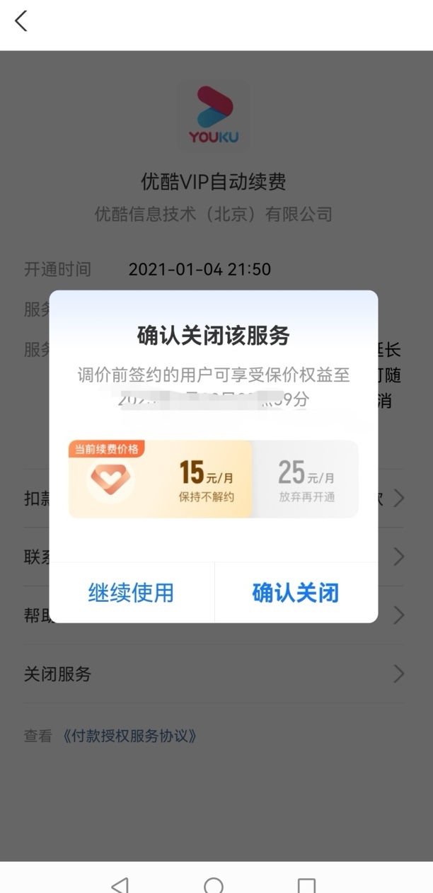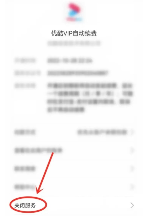 5、自动跳转到免密支付/自动扣费界面,选择优酷会员VIP自动续费,点关闭服务