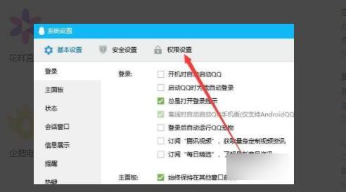 3.这是就会打开QQ系统设置窗口,在窗口中我们点击“权限设置”选项卡。