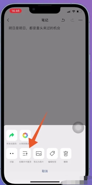 第三:接着就可以看到置顶聊天,点击它右侧的开关。