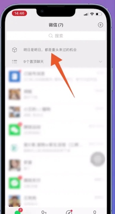 步骤5、返回消息页面,在上方位置就可以看到设置的置顶语。
