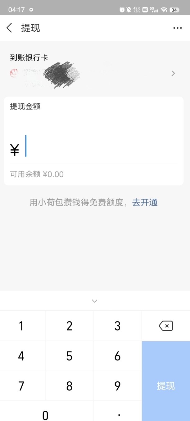 4、打开到提现页面,输入提现金额,然后选择底部“提现”即可。