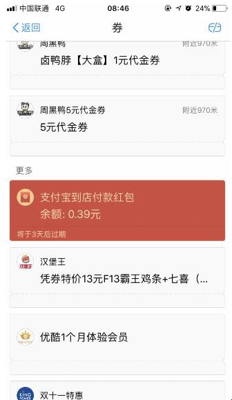 第二:在卡包里我们可以看到各种优惠券,将页面拉到最下方,查看更多优惠券。