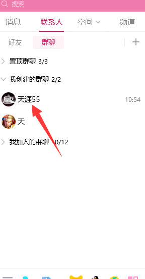 QQ主页面,点击一聊天对象