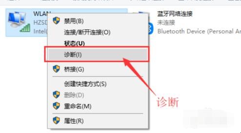 第一:如果通过以上重启网络连接叹号还存在,那么可以试一下“诊断”功能。在打开的网络连接界面中,找到有故障的无线连接“WLAN”,右键单击并选择“诊断”,然后等待它诊断完成。